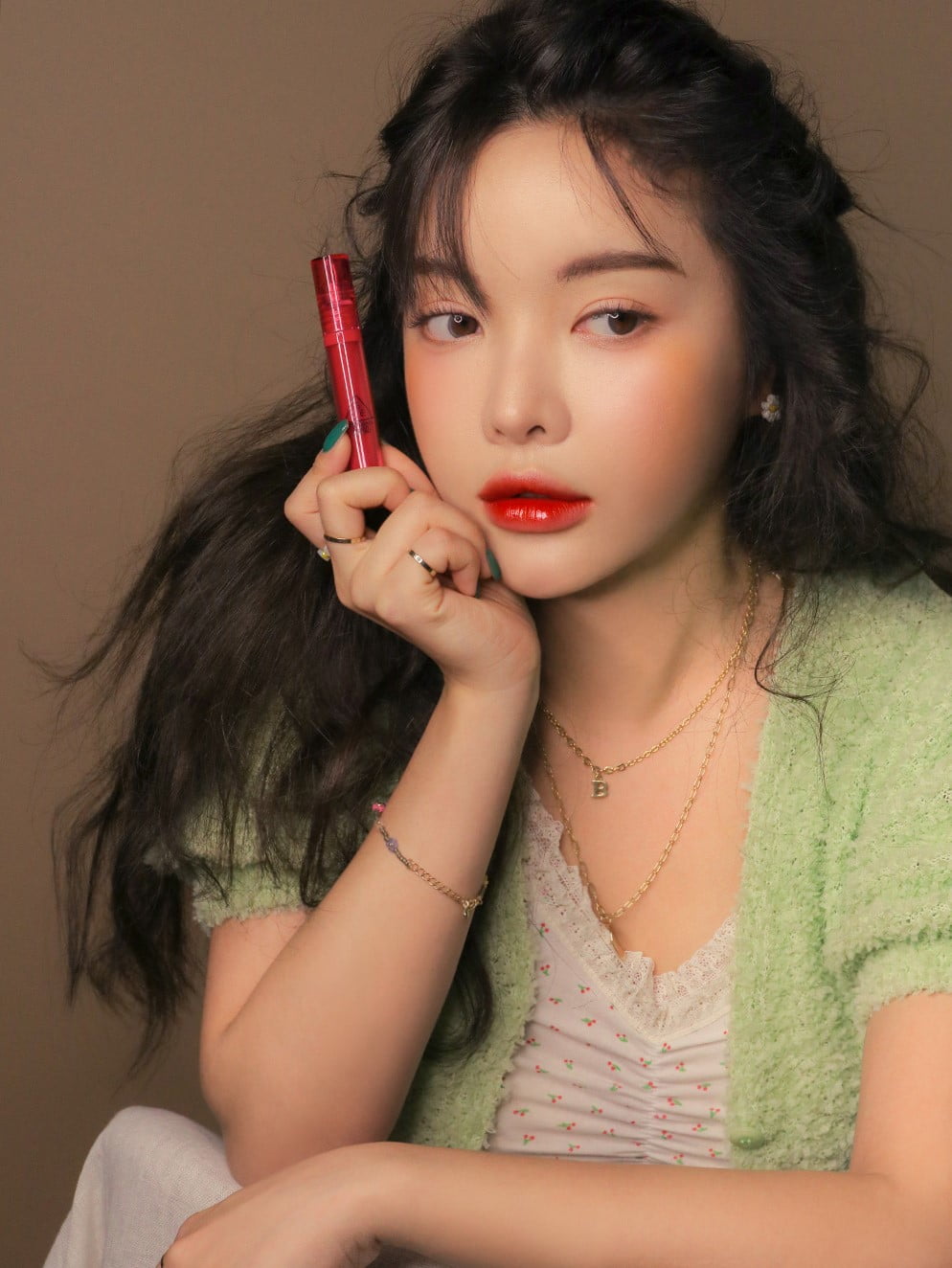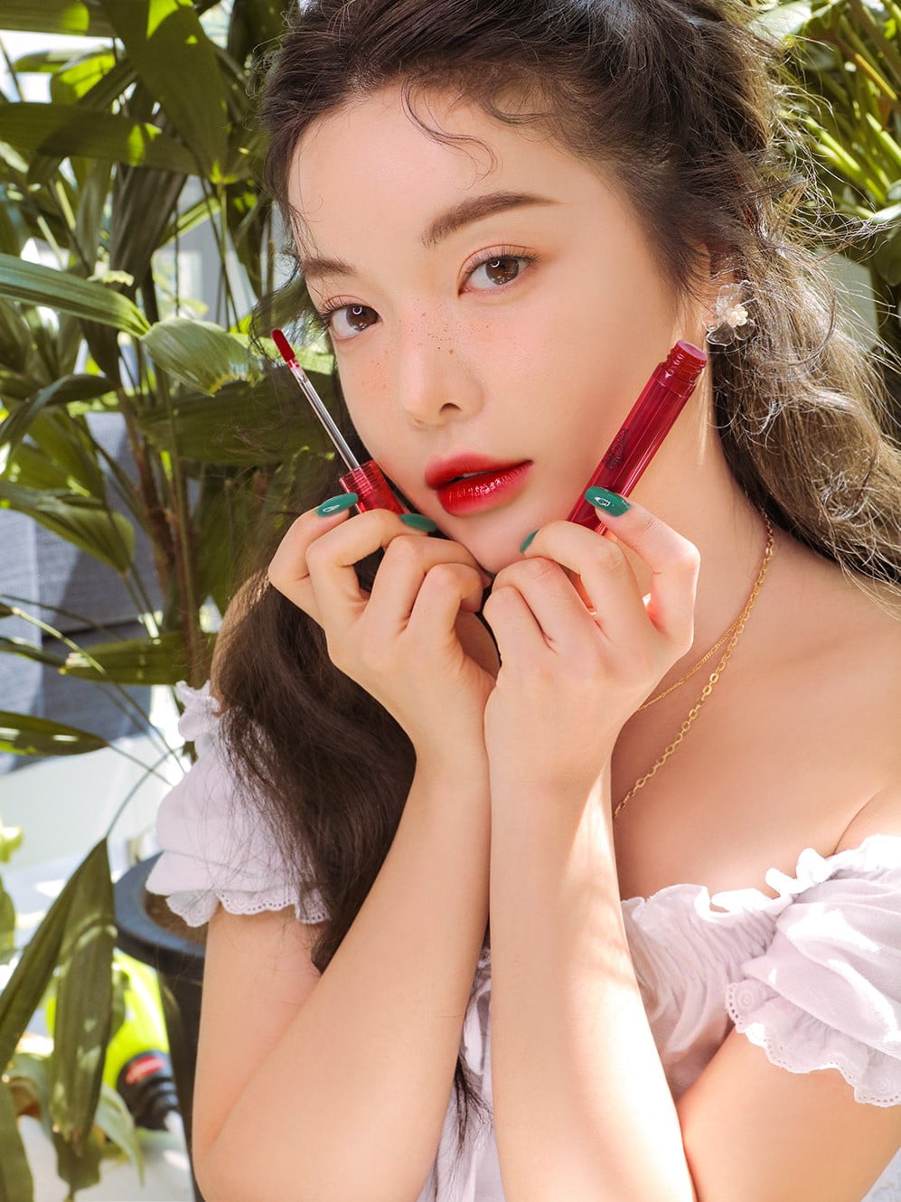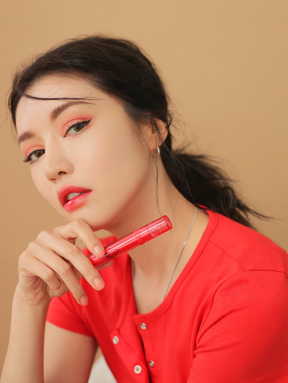 肌をひと際明るく見せてくれるレッドピンクカラー🍓